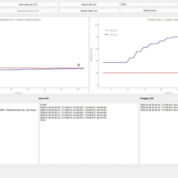 - Systemy zbierania, przetwarzania i wizualizacji danych. Projektowanie paneli operatorskich, a także prototypów loT oraz mikrokontrolerów. Aplikacje komunikujące się przez Bluetooth/USB, Wi-Fi. Integracje ze stronami www. Przykładowe wdrożenie: Przetwarzanie danych temperaturowych, wilgotności, poziomu stężenia CO2 w magazynach klienta. Automatyczne powiadamianie (e-mail, sms) w zależ ności od ustalonych progów.